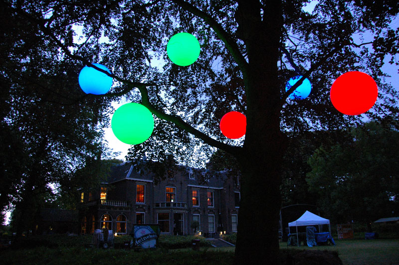 Bollen Set van zes RGB LED bollen van 1 m. diameter. Specificaties: 220v Random RGB LED verlichting Beschikbaar: 1 x 6 bollen > Meer kunstobjecten Tweet Related